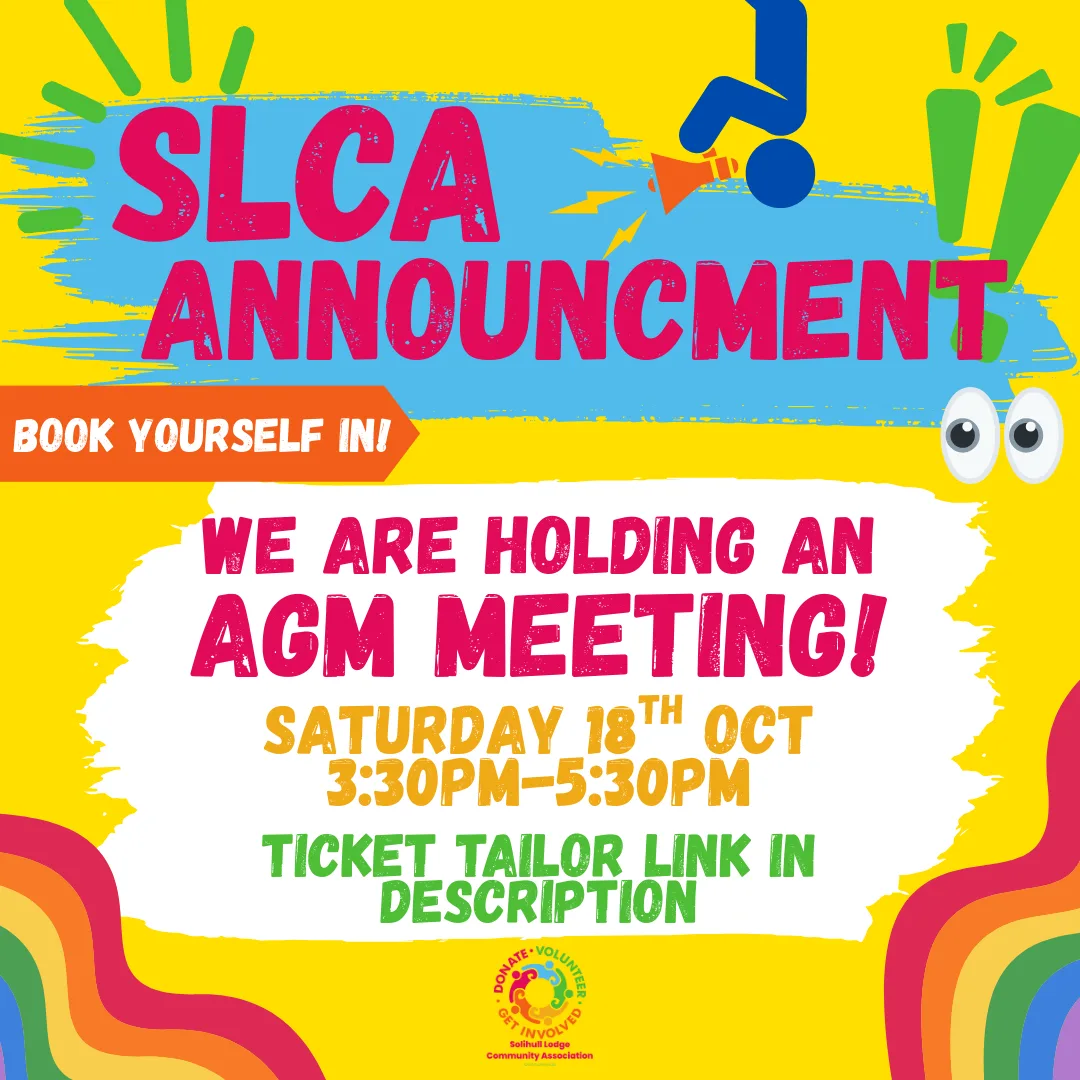 We’re excited to announce that Solihull Lodge Community Centre’s Annual General Meeting (AGM) will be held on Saturday 18th October from 15:30 to 17:30 right here at the Centre!