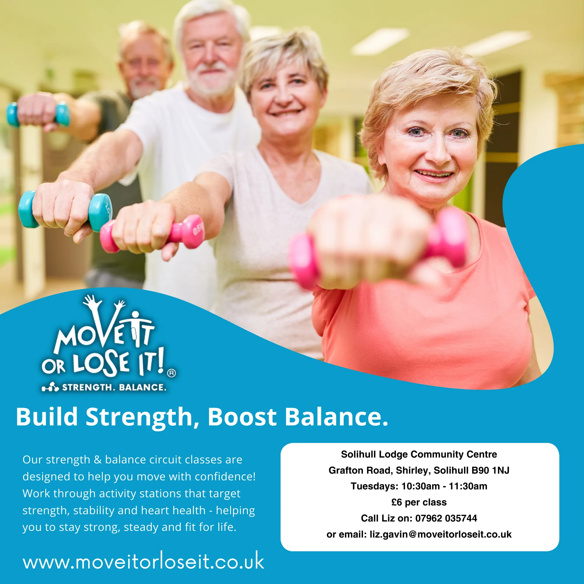 Stay active, improve your strength, and have fun with Liz’s Move It or Lose It over 60’s class at Solihull Lodge Community Centre! Designed for all abilities, this gentle exercise class is perfect for improving balance, mobility, and overall wellbeing in a friendly and supportive environment. Held every Friday from 1 PM to 2 PM, it’s a great way to keep fit, make new friends, and enjoy some social time. Whether you’re looking to maintain your independence or simply stay active, Liz’s class is the perfect fit. Come along and give it a try—you’ll love the difference it makes!